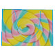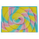 En giftig väska med ett yummifoto. Ett makrofoto av en lollipop. Blått rosa och gult pastel färg i spiral mönster.
