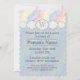 Den här inbjudan innehåller linjer av rullande vågar som gör ett enkelt och roligt mönster i en regnbåge av pastel färg från rosa till lavender överlagrad av ett halvgenomskinligt lagrar av regn under en uppsättning fluffy grått moln. Molnet i mitten innehåller ett monogram som är uppställt ovanför regnet på den nedre delen av kortet, där du kan hitta exempeltext som kan anpassas för att skapa en personlig inbjudan för din händelse.