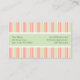 Ett sött affärskort med ett band på ett strippat mönster. Kombinationen pastellpersika och grönt rand skapar ett viskartat och elegant mönster, vilket framkallar en känsla av lekhet och sofistikering att kostym är ett bageri eller ett barnklädesplagg perfekt.