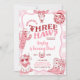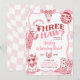 Pastel Retro Threehaw Cowgirl Birthday Party Invitation, Blush Pink Wavy Gingham Birthday Invite, Editable Coquette Bow Birthday