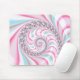 Den här vackra musknappen har en spiral-ryggstödsdesign i abstrakt i pastellblått, rosa och vitt.