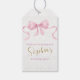 Pastel Rosa Bow & Elegant Guld Script Birthday Presentetikett