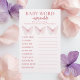 "Pastel Rosa Butterfly Baby Shower Ord Unscramble Flygblad