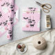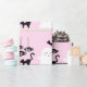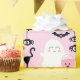 Mjuk rosa Halloween-omgiven omslutning papper med en söt och pookisk design: spöke, spindlar, fladdermus och svart katt!
