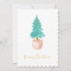 Pastel Rosa Farmhouse Check Poted Julgran Helgdag Card. Jordbrukshus, stuga och shabby jul stil. Tomt utrymme på baksidan för personlig hälsning.