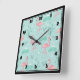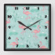 Pastel Rosa Flamingos Grönt Mönster Fyrkantig Klocka