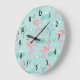 Pastel Rosa Flamingos Grönt Mönster Stor Klocka