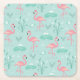 Pastel Rosa Flamingos Grönt Mönster Underlägg Papper Kvadrat