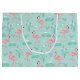 Giftväska med ett vismiskt mönster. Pastel rosa flamingos på en ljust grönt bakgrund. Grönt lily dynors och lotus blommor. Cute tropical vibe.