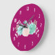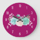Pastel Rosa & Grönt Blommigt Bouquet på Magentan B Stor Klocka