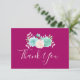 Ett tackkort med magentans bakgrund. En pastellfärgad bukett i färg överst. Blommorna, löven och spriten är pastellernas rosa och grönt. Skapat med vattenfärgsfärg och digitaliserat.