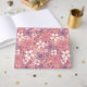 Den här gästen bok har blommor och löv i pastellskuggor av rosa och lila på rosa.