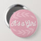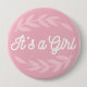 Retro "Det är en flicka"-text i en rustik design med mjuk rosa lövs.Eftersom det är en SVG-fil kan måtten och schemat färg ändras efter behov. Alma Wads knapp är perfekt för att meddela att en nyfödd bebis-flicka eller babyduschar har anlänt.