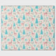 Pastel Rosa Reindeer Blue Gräs Träd Snöflingor Presentpapper