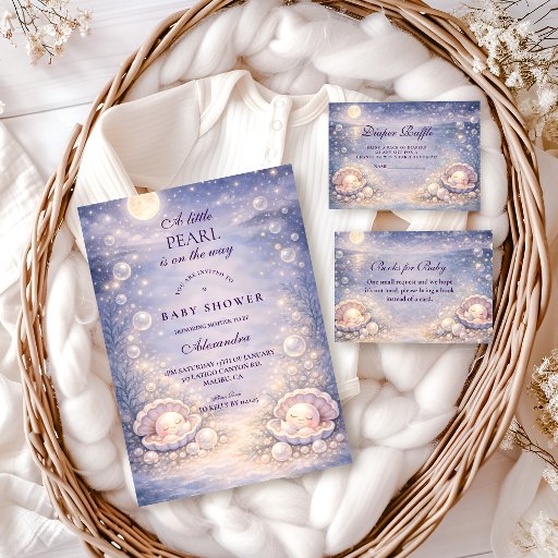 Pastel Seashell Pearl Baby Shower Inbjudningar