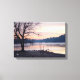 Fotografi av ett mistiskt sjö vid soluppgång med ett silhuetterat ekstrå träd, tryckt på en stretched Canvas. — Fotografiet är upphovsrättsskyddat av fotografen Christina Spiegeland.