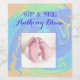 Det här välkomnas med en nyfödd bebis-design som har en färgstark virvel av lila, persika, grönt och blått. Du kan också ersätta bilden med platshållaren baby med ett fyrkantigt foto av baby eller lämna det som det är. Fyll i fälten för personlig information, ta bort text och/eller klicka på anpassa för att välja ett typsnitt färg, storlekare och stil som du vill använda.