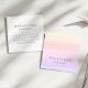 Affärskorten för vattenfärggradient i en unik kvadratisk form har ditt namn och företaget namn, titeln eller ockupationen på framsidan, som ställs mot en ombre bakgrund i blekens solnedgångshus för gyllene gult, persikor, rosa och lavender. Lägg till kontaktuppgifter för fullt längst bak i en chic med moderna sans serif- och kursiv stil. Ett vackert val för bröllopsfixararna, evenemangsstilist eller vilket yrke som helst.