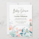 Pastel Teal Rosa Blommigt Cute Script Baby Shower Inbjudningar