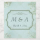Pastel Teal White Flowers Bröllop Vinflaska Etikett