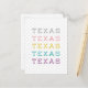 Du vill säga det mer än två gånger! Den här pastelldesignen visar ord "Texas" fem gånger i fem färg. Designen fungerar i allmänhet bra med ljus- eller mörk-bakgrunder, så du kan anpassa dina smaker till kostym. Perfekt för Texas invånare och f.d. folk som önskar att de fortfarande bodde här. Matchande produkter är tillgängliga.