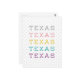 Du vill säga det mer än två gånger! Den här pastelldesignen visar ord "Texas" fem gånger i fem färg. Designen fungerar i allmänhet bra med ljus- eller mörk-bakgrunder, så du kan anpassa dina smaker till kostym. Perfekt för Texas invånare och f.d. folk som önskar att de fortfarande bodde här. Matchande produkter är tillgängliga.