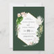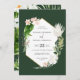 Pastelltropiska + guld-effektens geometriska bröllopsinbjudan. Mjuka muterade toner tillför en lugn elegans till denna bröllop-svit.