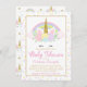 Unicorn-babyduschinbjudningar med en hedervärd rosa blommigt som förenar ansikte med guld horn och regnbåge och pastellpunkt och ansikte med enmajsbakgrund. Dessa söta babyduschinbjudningar för enhörniga barn är enkelt anpassade för ditt evenemang genom att bara lägga till dina uppgifter.