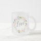 Vitaktigt mugg med vattenfärgade pastellblommor och modern kalligrafi.