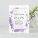 Vattenfärgviolett - inbjudan till lilac blommigt-bröllop med ett guld-geometriskt ram-anpassade till dina händelsespecifikationer.