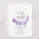 Vattenfärgviolett - inbjudan till lilac blommigt-bröllop med ett guld-geometriskt ram-anpassade till dina händelsespecifikationer.