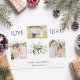 Enkel och elegant med tre fotoformade julrutor med anpassade Kärlek & Ljust text och subtil pastellfärgad holly och mistlet.