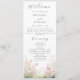 Den här designen har en delikat vattenfärgsillustration av vilda blommor i skuggor av grönt och rosa.