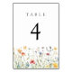 Pastel Wildflower Wedding Table Number Bordsnummer