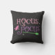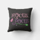 Cute Roligt Pastel Witch Hocus Pocus Halloween Broomstick Dekorativ kudde. Välkomna gästerna med denna söta, konstiga personlig Halloween Dekorativ kudde. Snyggtens typografi har "Hocus Pocus"-ordalydelsen lila och pastellernas rosa, start- och grönt häxbroomstick, rosa häxa, i svart bakgrund.