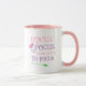 Cute Roligt Pastel Witch Hocus Pocus Halloween Broomstick Coffee Quote Mugg, njut av helgdag med den här söta, konstiga personligen Halloween mugg. Snyggtens typografi har texten "Hocus Pocus I Behöver kaffe för att fokusera" med texten rosa och lila, och grönt häxbroomstick, rosa häxa, i vit bakgrund. rosa Halloween-häxa