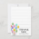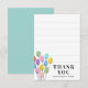 Perfekt för en ung barnskribent har detta lilla platta tack-kort subtila linjer för att hjälpa nya skribenter att hålla sina linjer raka och ger dem utrymme att skriva ett enkelt tack-meddelande för de presenter som de fick efter sin födelsedagsfirande. Söta pastellfärgade födelsedagsballonger bidrar till det roliga.