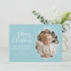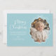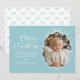 Pastell Blå Vit Vågig Retro Foto Julkort