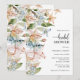 Pastell Blommig Bröllopsfest Inbjudan. Denna eleganta bröllopsfest inbjudan har vackra, handmålade akvarell rosa vår liljor, dammig blå sommar vilda blommor och salvia botanisk grönska.