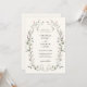 Elegant och stilren, denna bröllopsinbjudan har vackra handmålade ömtåliga akvarell rosa, lila och blå pastellfärgade vildblommor och salvia grönska arrangerade i en vacker vintagekrans på en elfenbensvit bakgrund. Baksidan har en vacker matchande bukett med brudens och brudgummens monogram och en valfri bröllopswebbplats.
