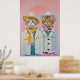 Denna roliga illustration skapades med hjälp av AI och visar två söta katter utklädda som cowboys i pastellfärger. Det är en rolig trycksak perfekt för att pryda dina väggar, ge bort som en genomtänkt present eller för att tillföra en touch av whimsy till ett barns rum.