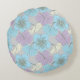 “Lägg till en mjuk och elegant touch till din inredning med denna pastellfärgade runda kudd med ömtåliga blå och lila klöverblommor. Dess unika form gör den till en charmig accent för soffa, stolar eller sängar, medan dess mysiga design gör den perfekt som en present.”