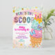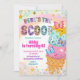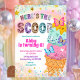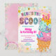 Pastell Glittrig Flickas Glass Födelsedagsinbjudan, Here's The Scoop Födelsedagsinbjudan, Redigerbar Söt Efterrätt Barnkalas-inbjudan
