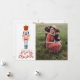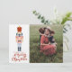 Det här julkortet med nötknäppare är en påminnelse om dagar som gått, med en modern twist. Designen visar en rosa och röd vintage julnötknäppare på en vit bakgrund. Det står "Önskar er en God Jul" med en plats att lägga till ditt favoritfoto. På baksidan finns en annan ornament med ett meddelande som du kan anpassa och lägga till dina namn.