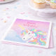 Denna magiska enhörningsservett har en pastellfärgad himmel, mjuka moln och en enhörning med regnbågsman. Personliggjord för “Giannas 3-årsdag” tillför den en fantasifull saga till enhörningskalasbord.