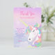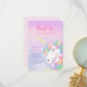 Pastell regnbåge enhörning konstverk med vattenfärg bakgrund och delikat moln illustration. Denna fantasifulla saga layout har elegant skript typografi och drömmiga pastellfärger, perfekt för en magisk flicka födelsedagsfirande.