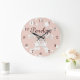 Pastell Rosa Off-White Band och Söta Tvillingkanin Stor Klocka