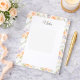 Tillägg skönhet och organisation till din dagliga rutin med denna eleganta notisblock med pastelljus blomsterdoft. Med mjuka persikoröda rosor, lavendelblommor och ett delikat grönt chevronmönster ger denna design en fräsch, feminin touch till ditt skrivbord, kök eller arbetsplats.