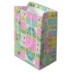 Tillsätt en touch av lekfull elegans till din nästa fest med denna pastellila, turkosa och krämfärgade rutiga blommiga presentpåse. Denna unika design har en trendig geometrisk lapptäcksdesign i kombination med ömtåliga, handritade blomskisser för ett utseende som är både modernt och vintageinspirerat.