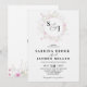 Denna design har en mjuk rosa färgskala med vilda blommiga illustrationer runt den centrala texten på en blek rosa bakgrund. Denna inbjudningsdesign är modern men tidlös och förmedlar romantik och elegans genom sina ömtåliga blommor och mjuka färger. Det är ett vackert sätt att tillkännage ett bröllop och inbjuda gäster till den speciella dagen.